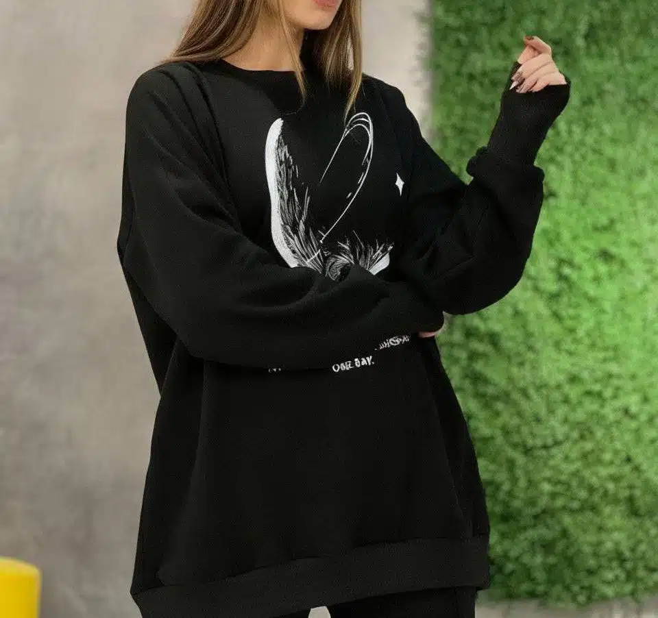 بلوز فینگردار ماه دخترانه فری سایز مشکی گرم و شیک