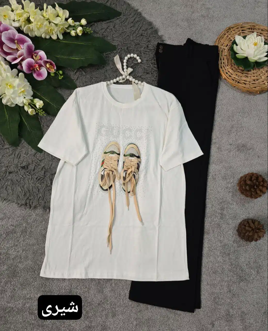 تیشرت زنانه مدل سوزان با طرح کفش GUCCI – جنس نخ پنبهای با کیفیت